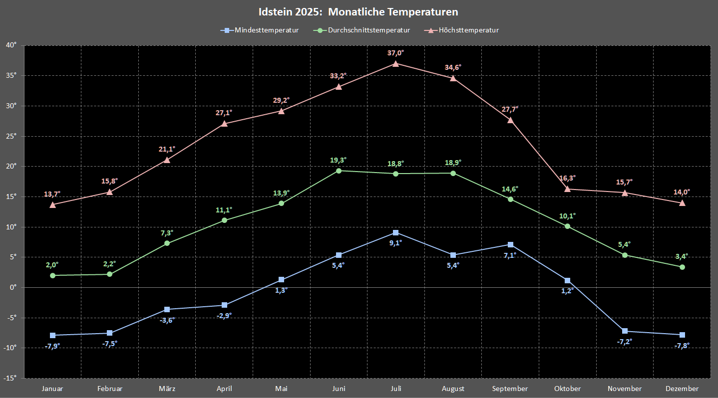 -7,9 °C und einem Höchstwert von 37,0 °C. Hier zunächst in einer Darstellung der Mindest-, Durchschnitts-