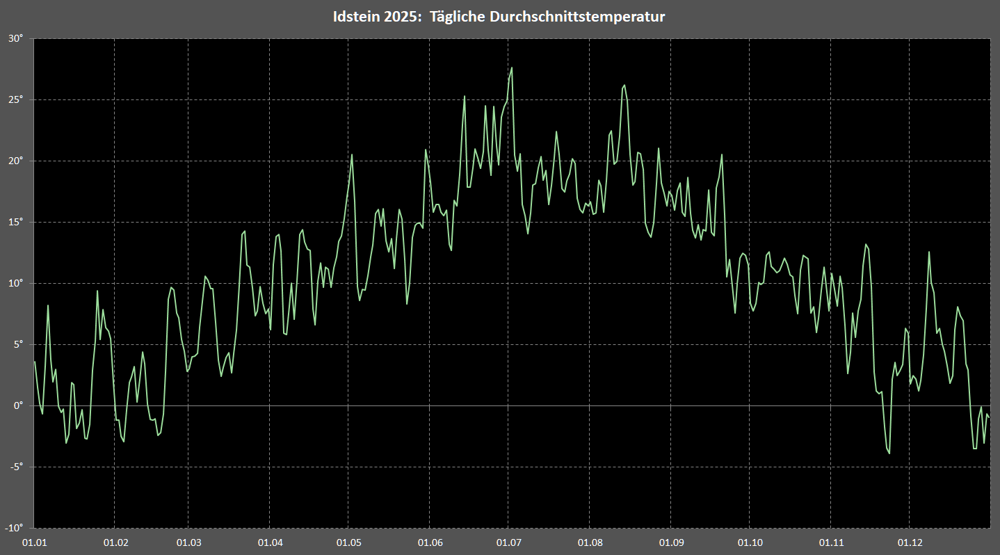 Weiter geht's mit den täglichen Durchschnittswerten. Die niedrigste Durchschnittstemperatur eines Tages betrug