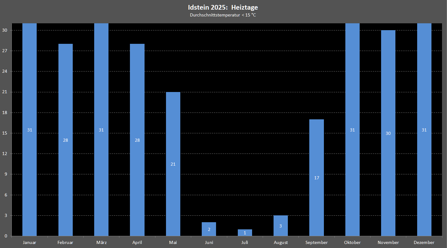 Weiter aufsteigend in der Temperatur geht es mit den Heiztagen - also den Tagen, an denen (theoretisch) die