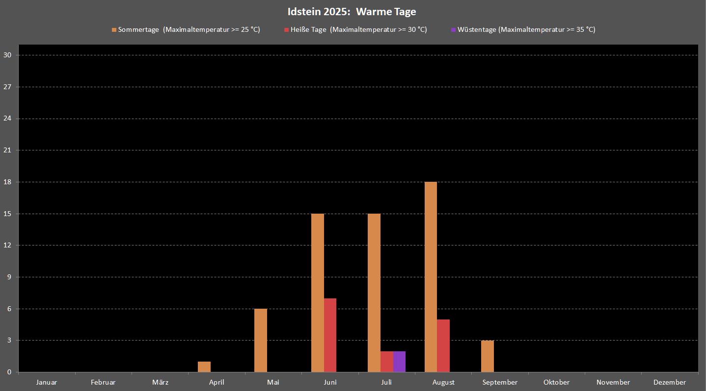 und der Wüstentagen. Zum besseren Verständnis der Darstellung: im Juli gab es 15 Sommertage, zwei davon waren