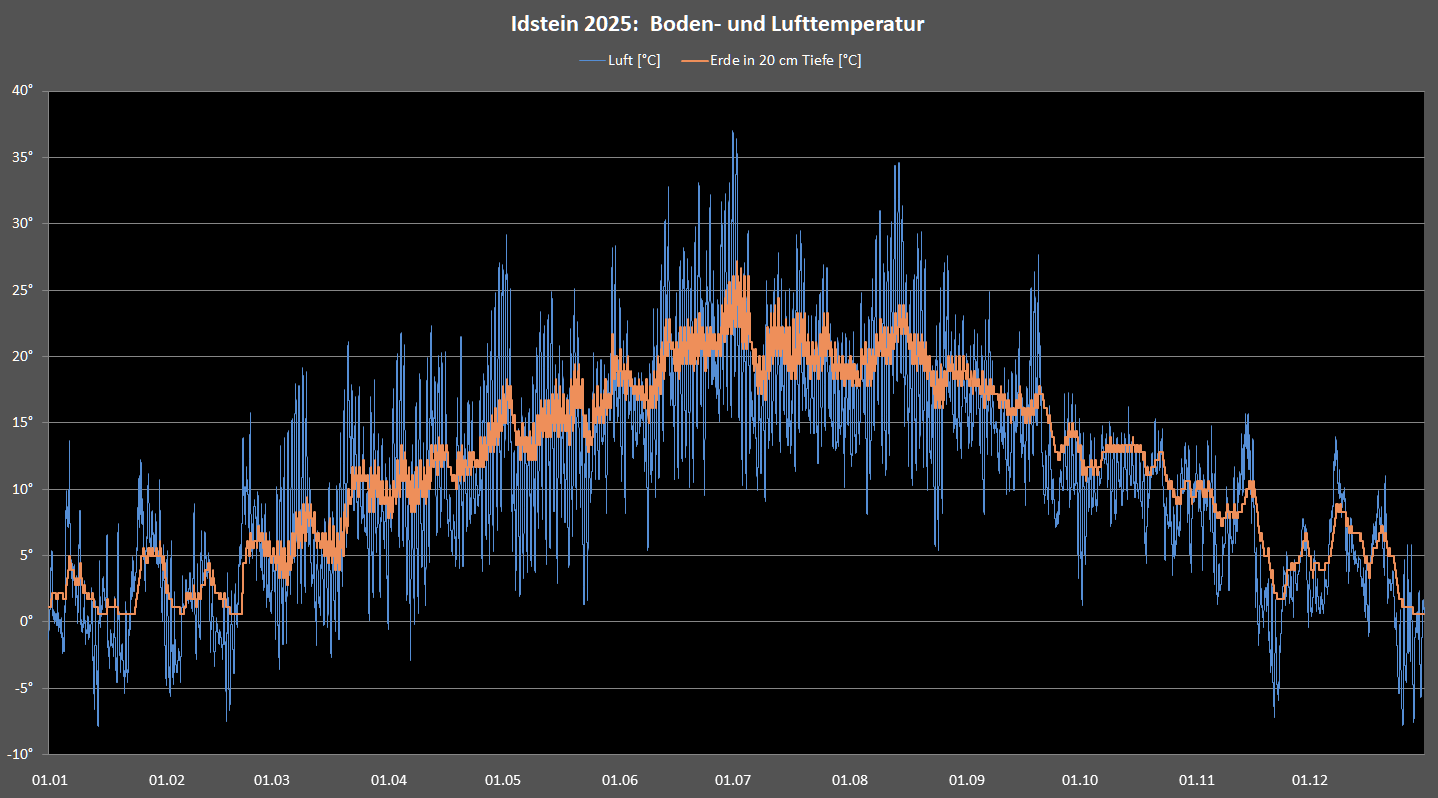 Da ich in 20 cm Tiefe in meinem Garten ebenfalls die Bodentemperatur erfasse, hier ein Vergleich der Bodentemperatur
