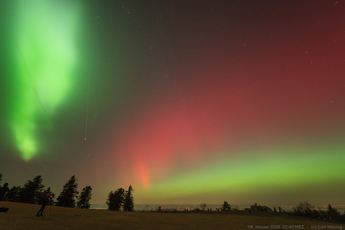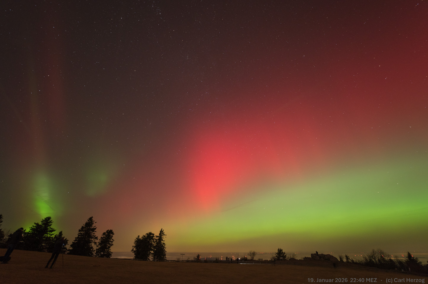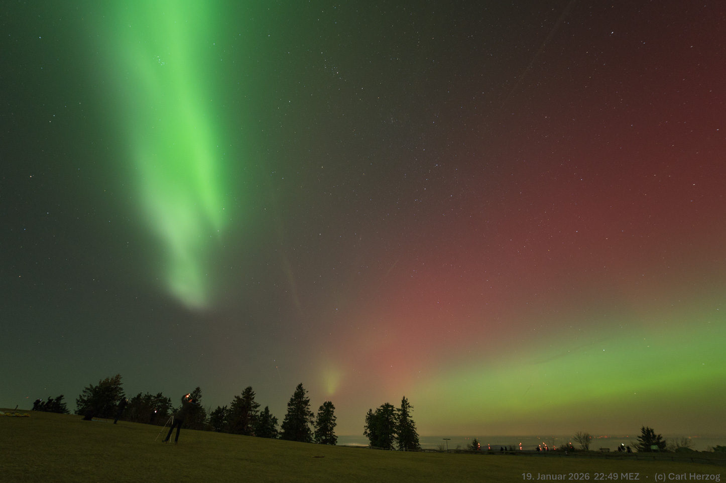 Rund eine Viertelstunde später prägten im Norden rote Polarlichter das Himmelsbild, und der Boden - sowie auch