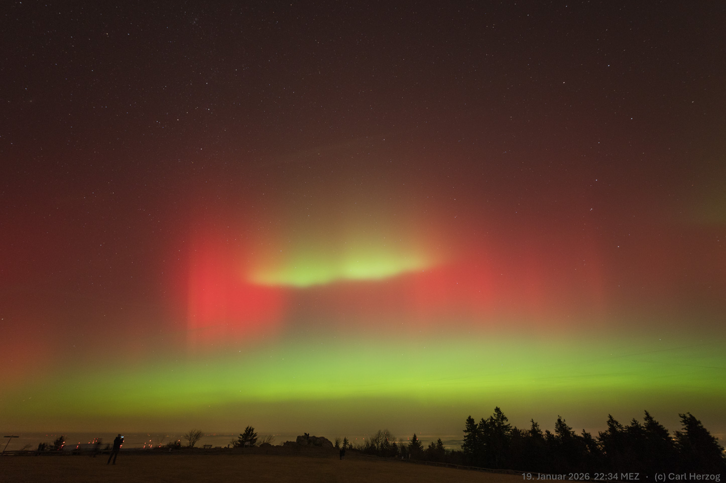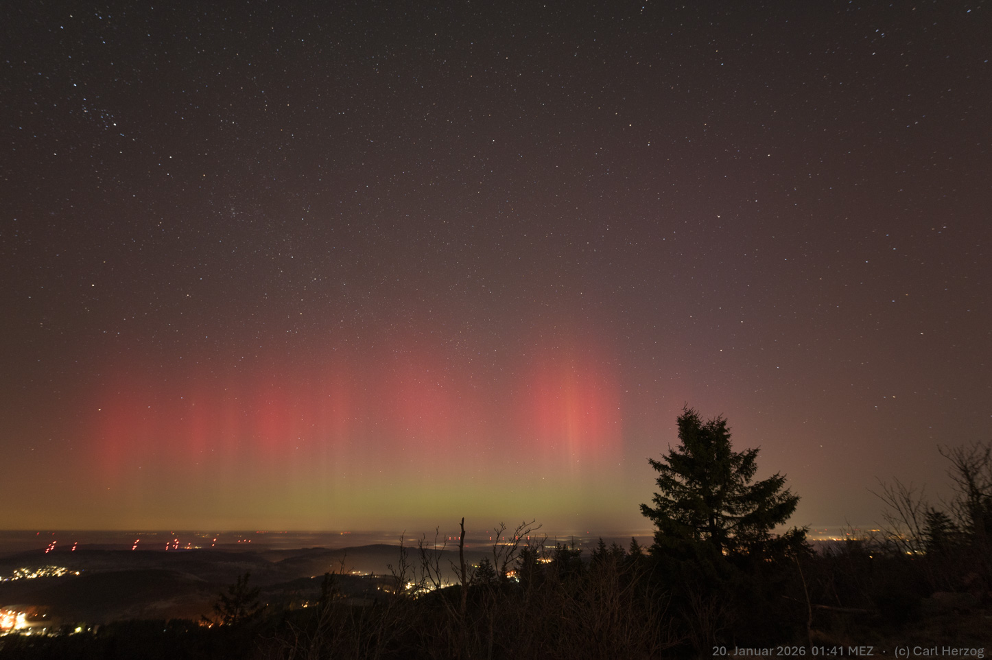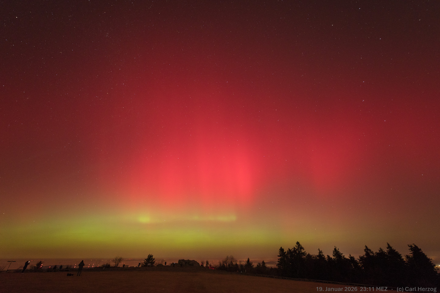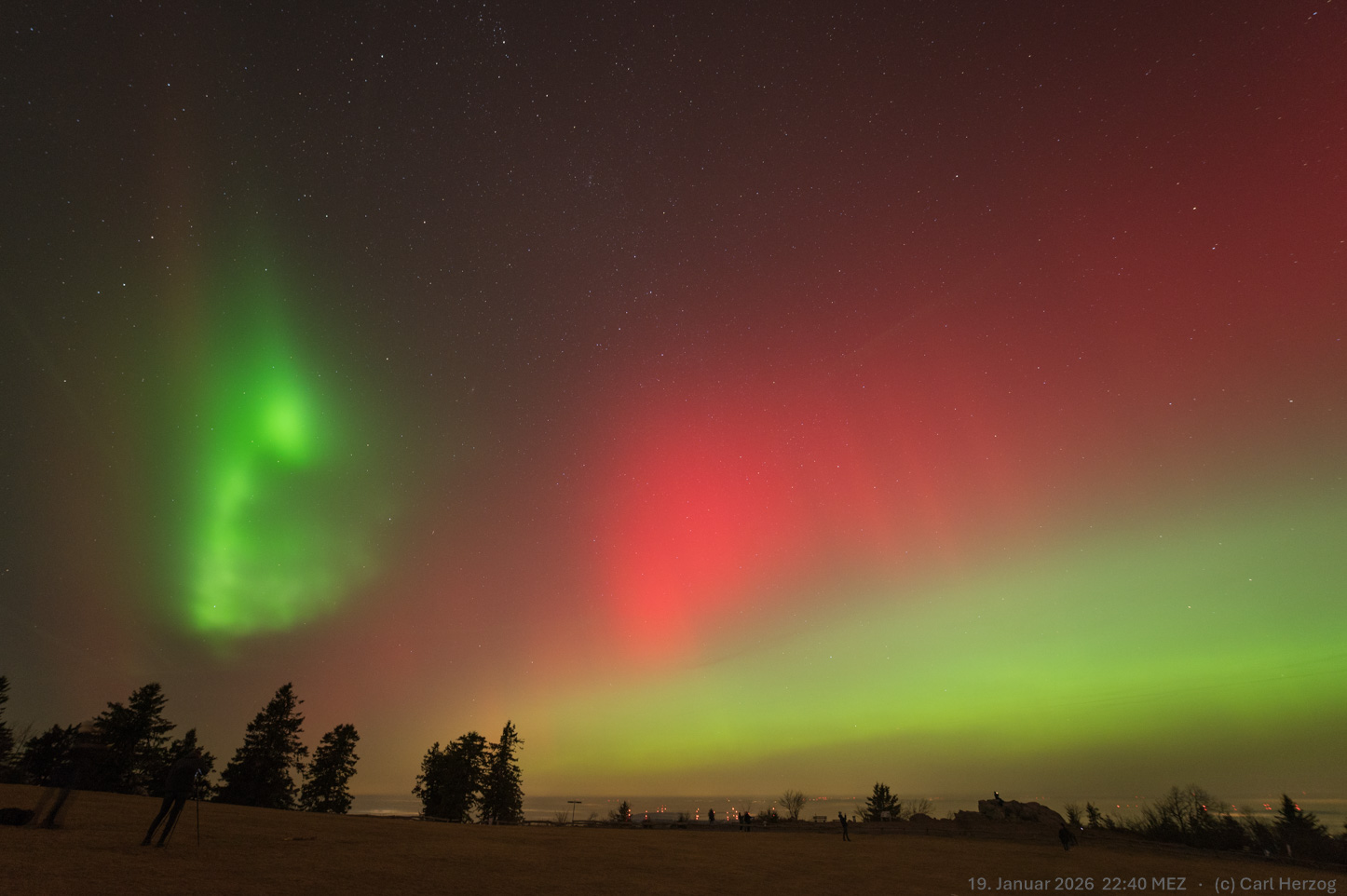 Rund eine Viertelstunde später prägten im Norden rote Polarlichter das Himmelsbild, und der Boden - sowie auch