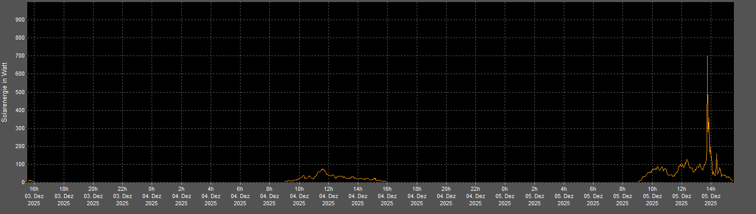 Die zweite Grafik mit der orangenfarbenen Kurve zeigt die Sonnenenergie an, die von den Solarmodulen des