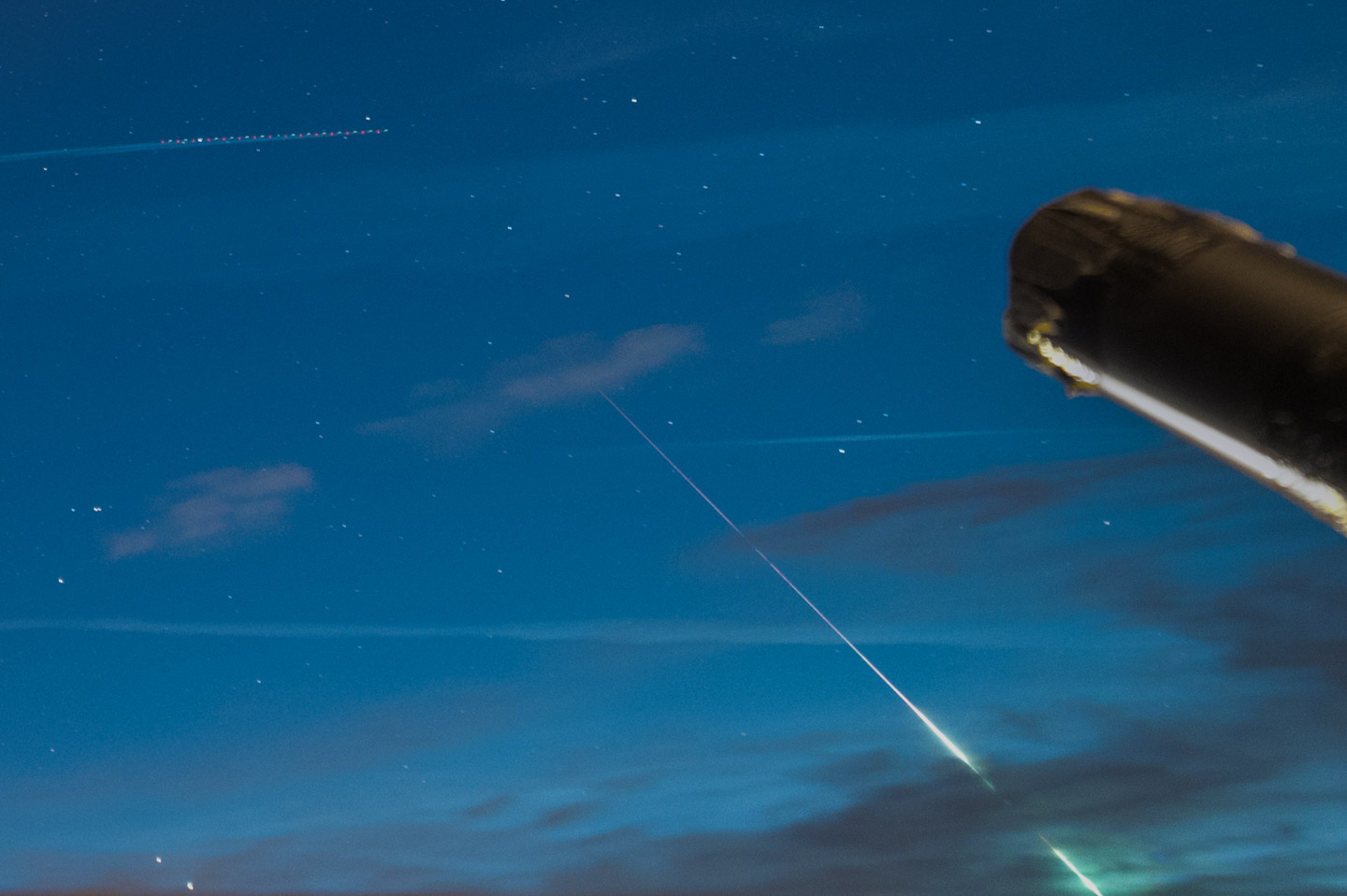 ein Kracher von einer Sternschnuppe tief im Südwesten. Aus dem Balkon am Gänsberg um 17:41 fotografiert.