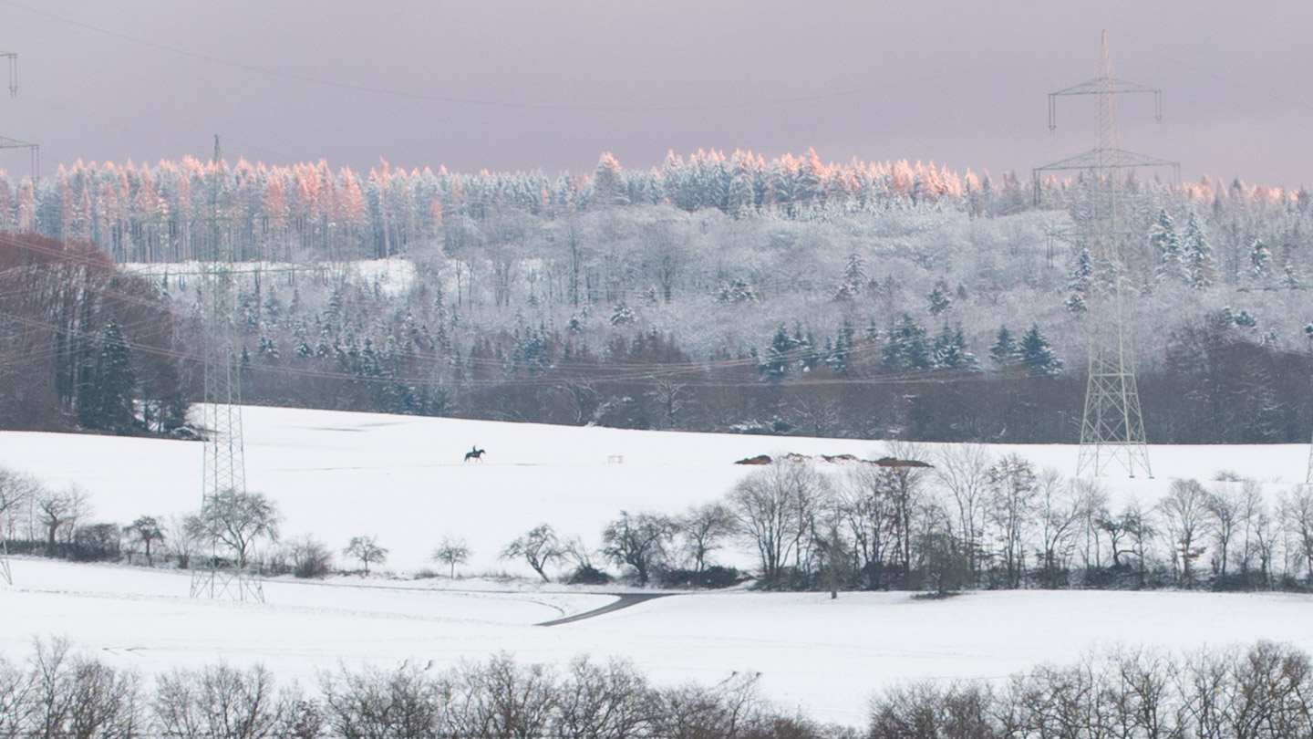 Nach Jahren der Trockenheit und vielen schneelosen Wintern ist das Idsteiner Land nun ständig von Schnee umhüllt. Am 09.01.2021 eine halbe Stunde vor Sonnenuntergang aufgenommen.