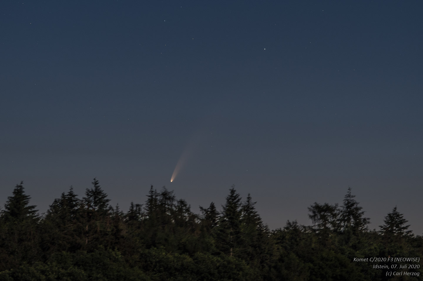 Komet C/2020 F3 (NEOWISE) in einer Aufnahme vom 7. Juli 2020, die am oberen Waldrand in Idstein entstanden ist.