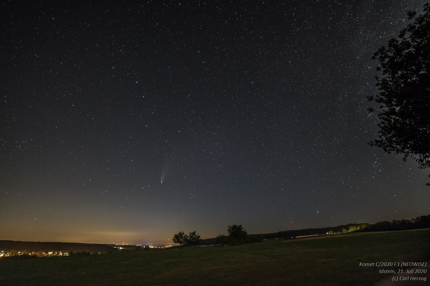 Komet C/2020 F3 (NEOWISE) in einer Aufnahme vom 21. Juli 2020, die an den Streuobstwiesen über Heftrich entstanden ist.