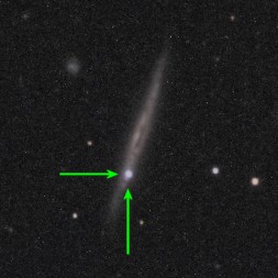 Supernova-Arten bleibt danach kein überlebender Stern übrig. Hier die Detailansicht (grün markiert die Supernova):