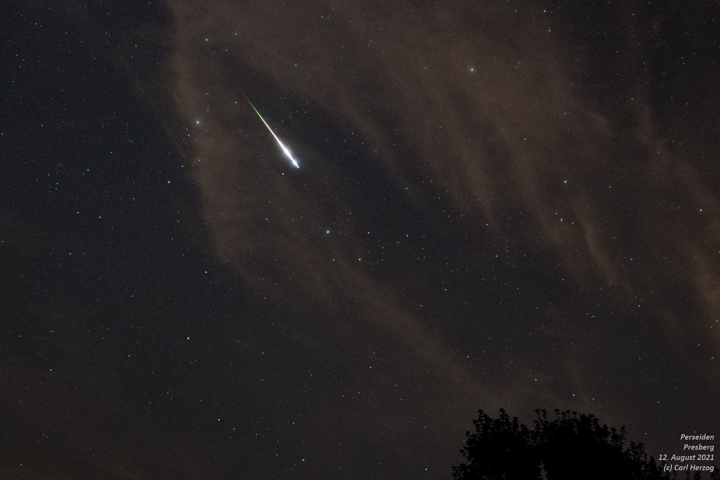 Perseiden-Bolide am 12. August in Presberg aufgenommen [für Vollbildansicht auf Bild klicken]