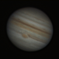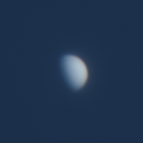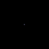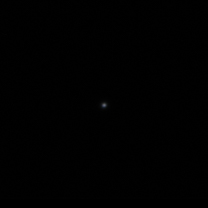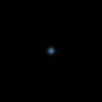 Neptun, auch als Scheibchen wahrnehmbar, wobei die Luftunruhe (Seeing) das Scheibchen größer aussehen lässt, als es in Wirklichkeit ist. |