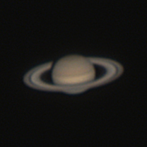 Saturn, mit einer gut sichtbaren Teilung des Ringes (Cassinische Teilung). Saturn steht derzeit gegen 22:30 flach im Süden und kann mit bloßem Auge gesehen werden. |