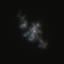 Und zum Vergleich der scheinbaren Größe: Die Internationale Raumstation, bei ihrem Überflug in der gleichen Nacht. |