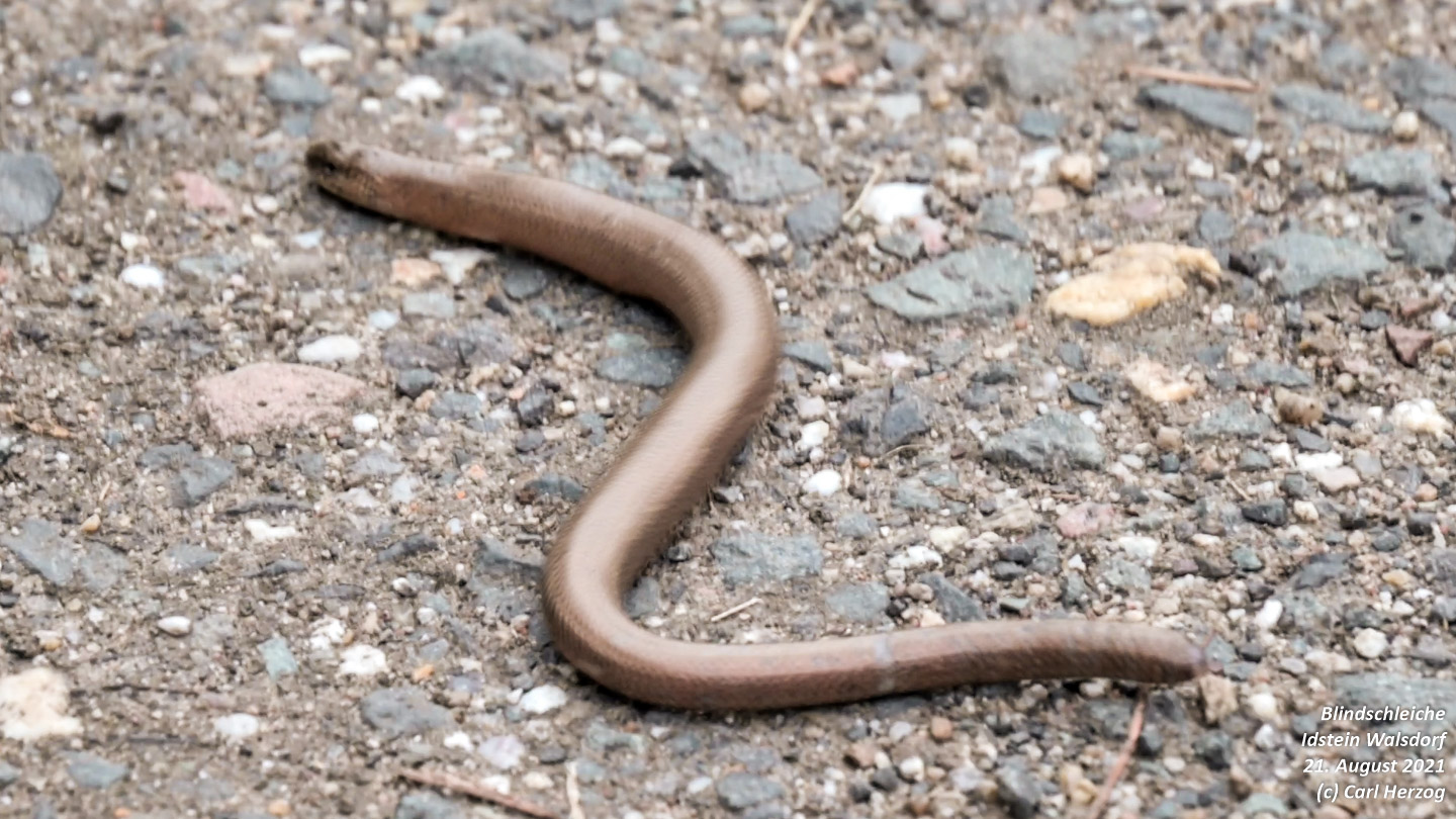 Blindschleiche, bei Idstein-Walsdorf am 21. August 2021 fotografiert [für Vollbildansicht auf Foto klicken]