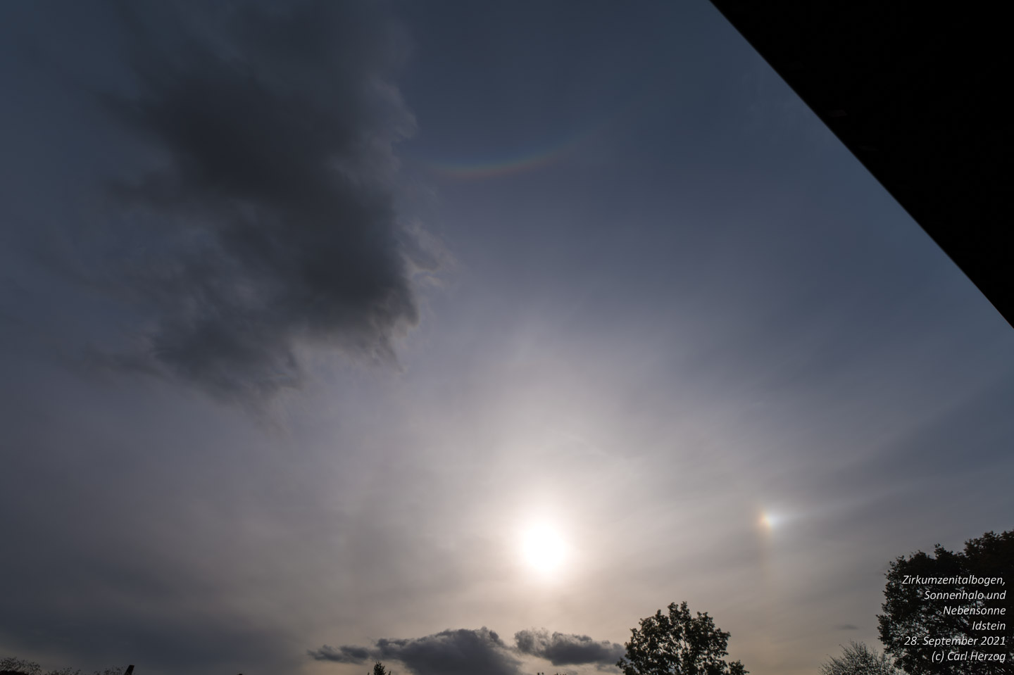 Zirkumzenitalbogen, 22° Halo und Nebensonne am Nachmittag des 28. September 2021 [für Vollbildansicht auf Bild klicken]