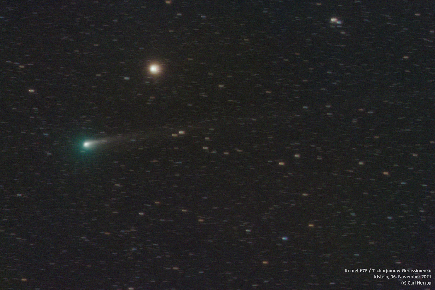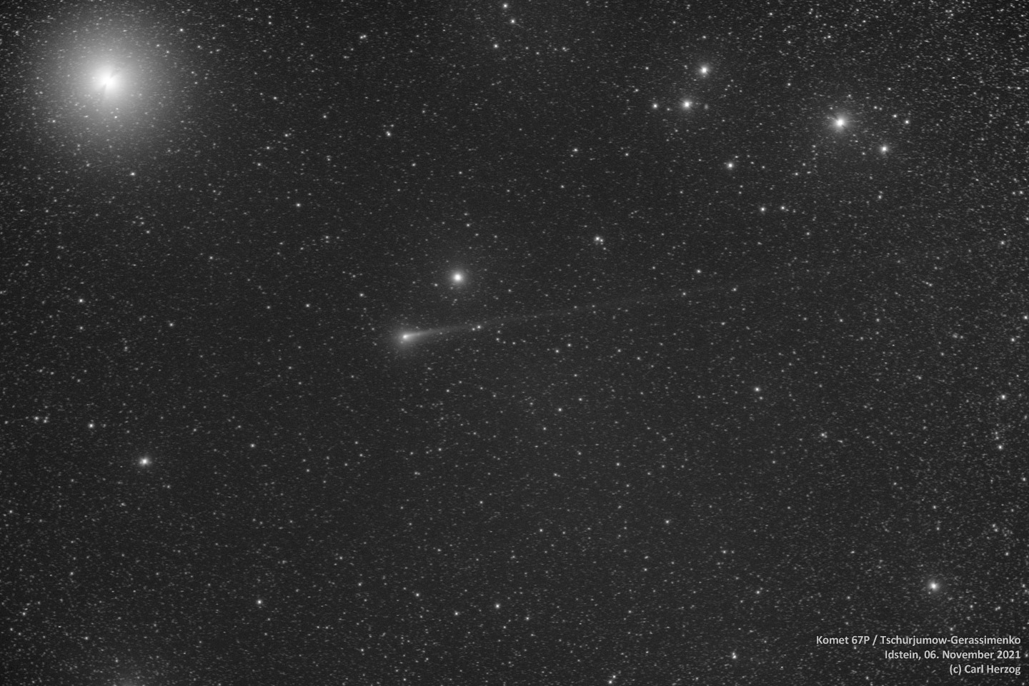 Komet 67P / Tschurjumow-Gerassimenko am Morgengrauen des 6. November 2021 fotografiert