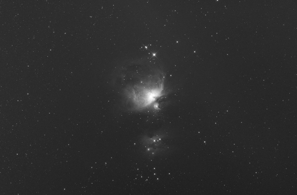 Bei der Vorführung wurde das Live-Bild des Teleskops via Zoom-App geteilt und die Objekte wurden im Detail erläutert. Dabei lag der Schwerpunkt auf Sternentstehungsgebiete innerhalb unserer Milchstraße. Es wurden Emissionsnebeln, Reflexionsnebeln und offene Sternhaufen gezeigt, und die Zusammenhänge erläutert. Die Teilnehmer konnten dabei jederzeit Fragen stellen. Los gings mit dem Orionnebel (M42), der auch mit bloßem Auge (ohne Fernglas) gerade noch zu erkennen ist. Die Aufnahmedauer war auf 15 Sekunden eingestellt, so dass man nicht lange warten musste, bis das erste Bild aufpoppte: |