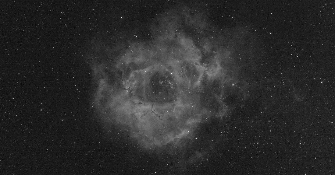 Während der Ansicht nahm die Kamera weiter Bilder auf und diese wurden im sog. Live-Stacking Verfahren schrittweise zusammenaddiert. Dadurch stand nach und nach mehr Signal zur Verfügung, das Rauschen wurde verringert und der Kontrast konnte verstärkt werden. So konnte man dann nach 2 Minuten bereits schön ins Objekt hineinzoomen: |