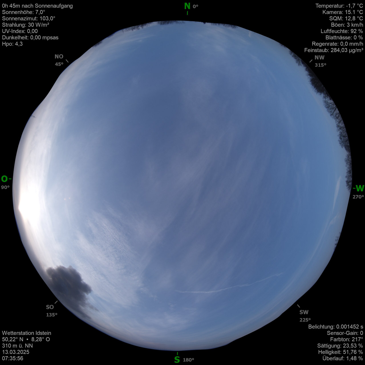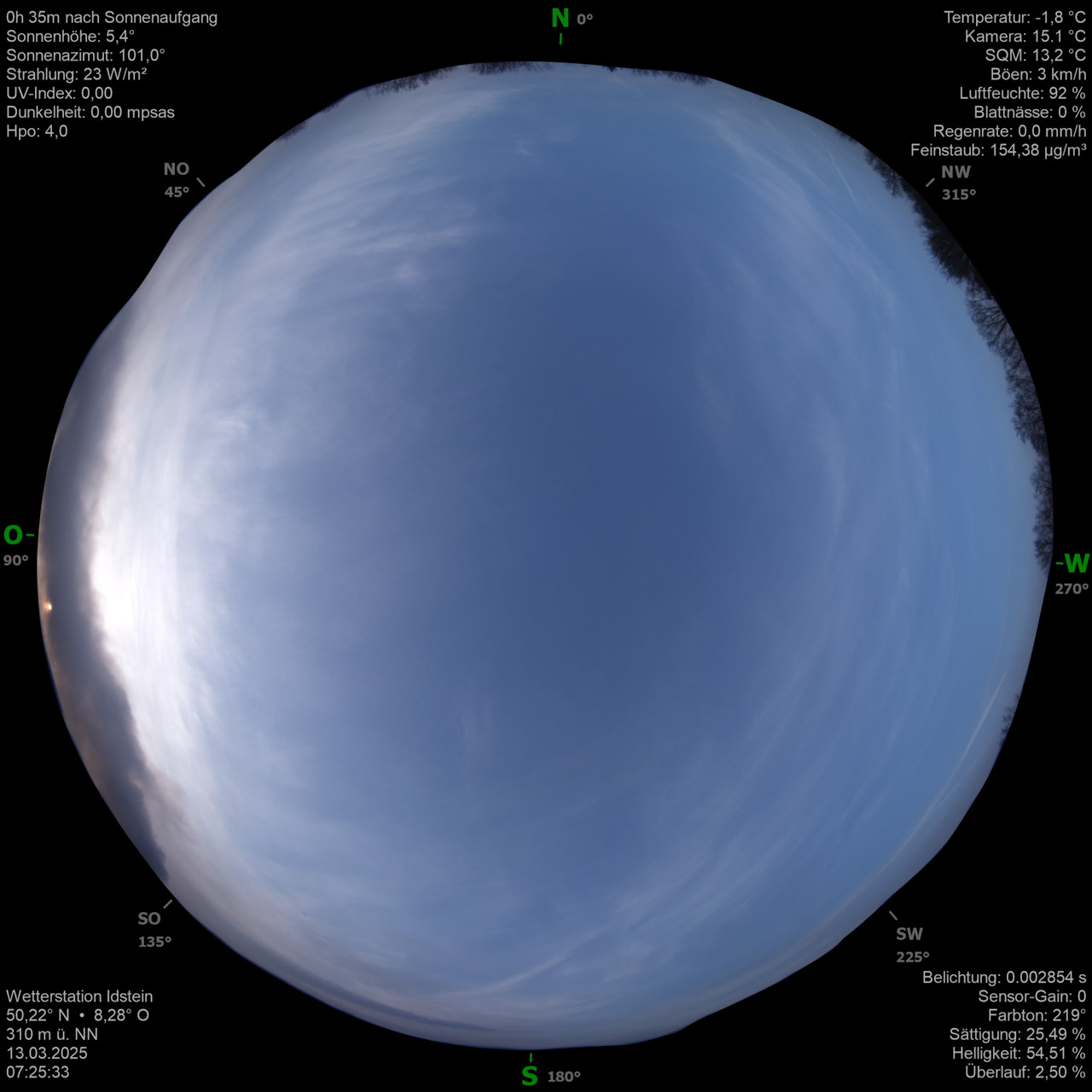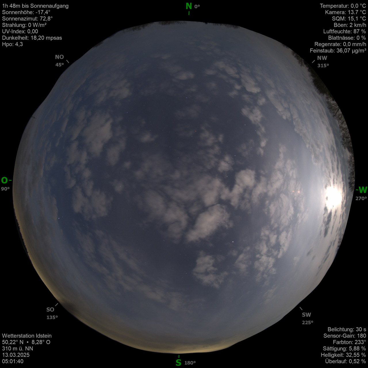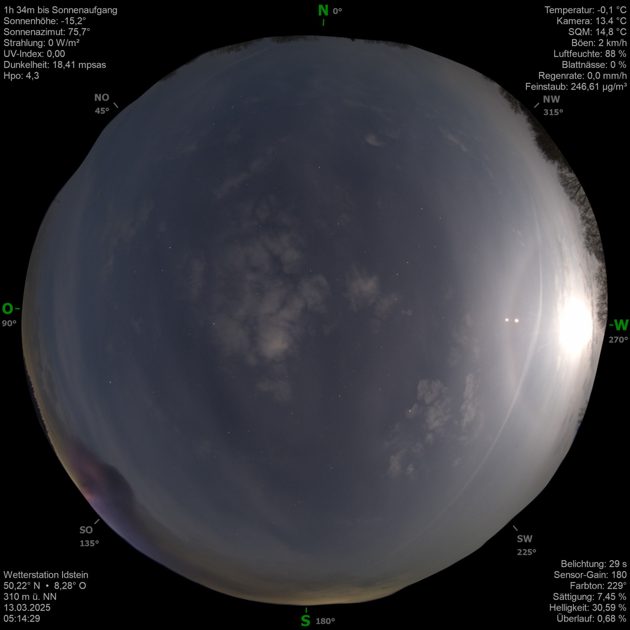 Aus den automatischen Aufnahmen einer Weitwinkel-Horizontkamera, die derzeit gen Südwesten ausgerichtet ist, wo sich - aus