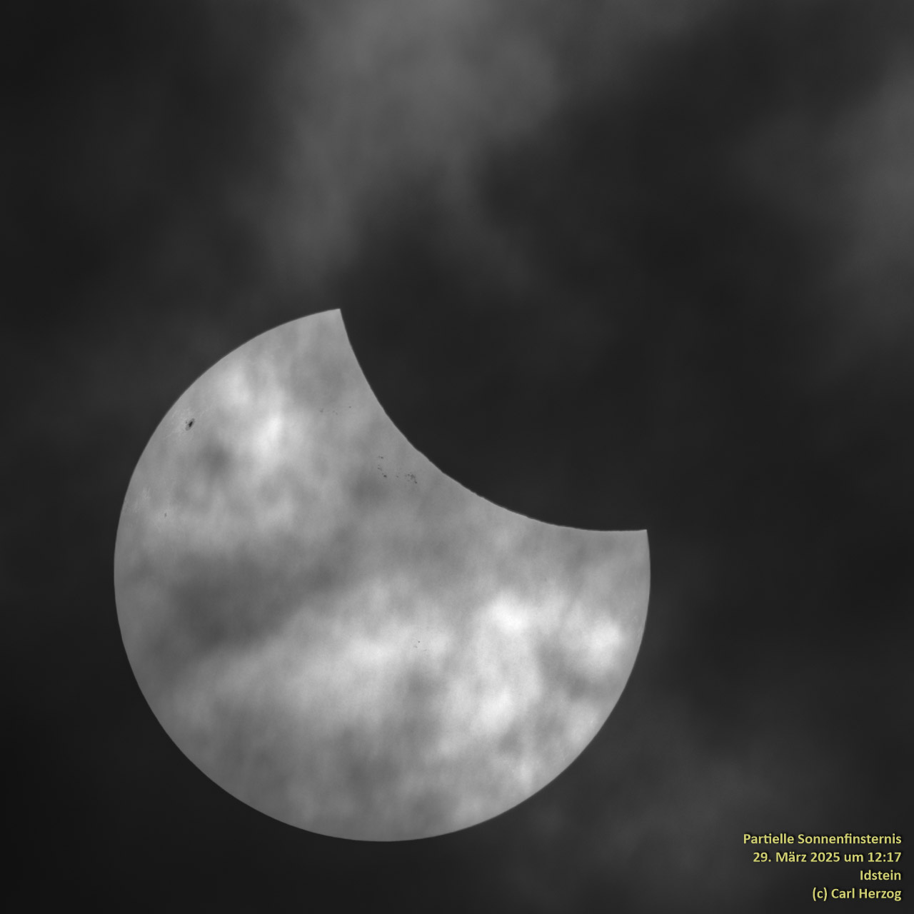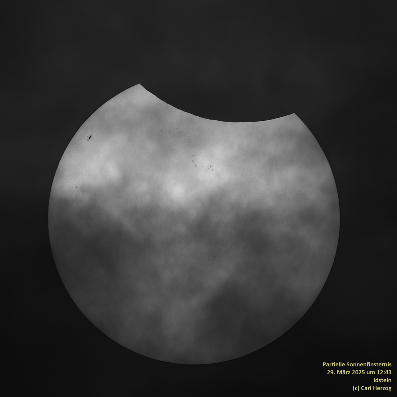 Wie für Sonnenfinsternisse in Deutschland üblich war es während der Finsternis heute bewölkt, und auf die Sekunde