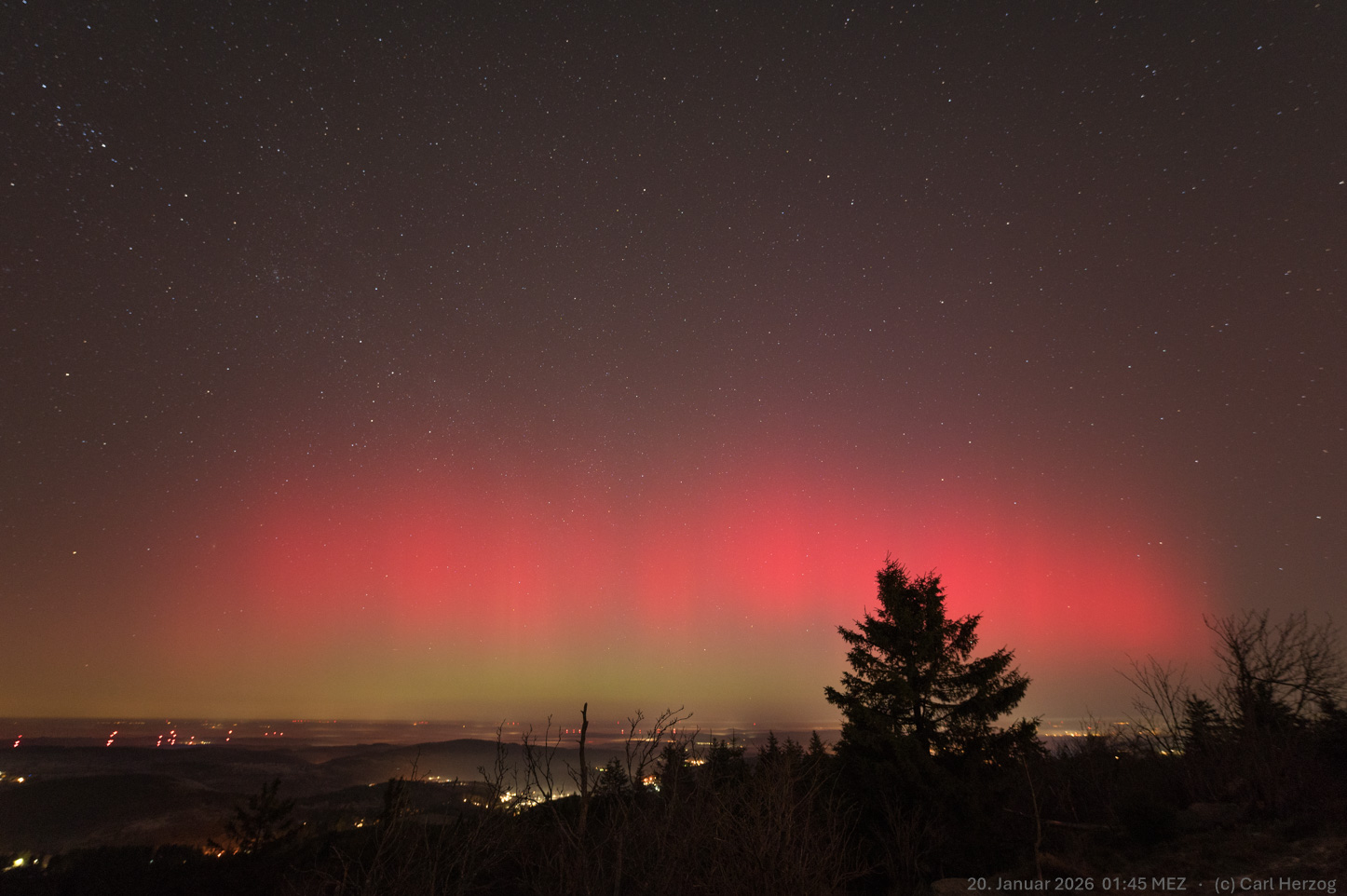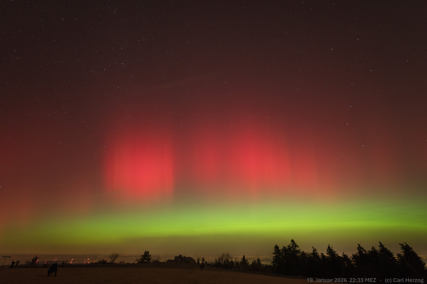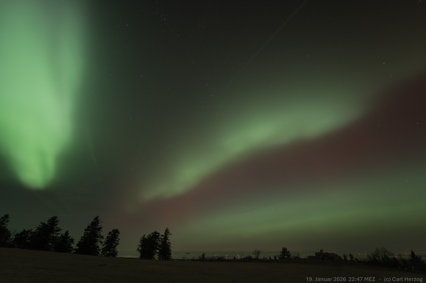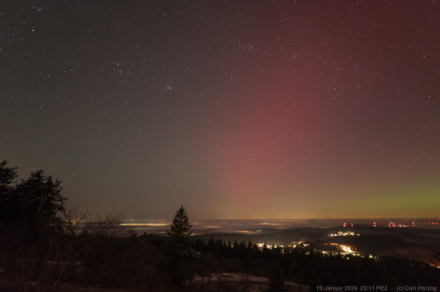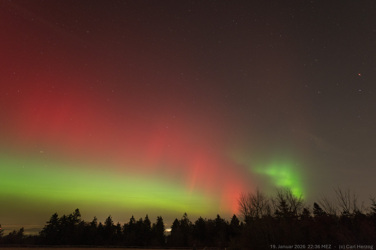 Rund eine Viertelstunde später prägten im Norden rote Polarlichter das Himmelsbild, und der Boden - sowie auch